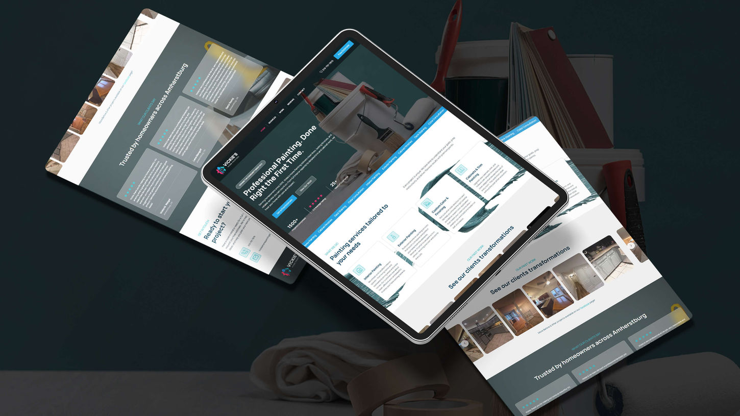 A clean, strategic website design created for Vickie’s Home Painting Company to showcase her craftsmanship and make it easy for new clients to connect. Built with a fully responsive layout, this custom site highlights her portfolio front and center while guiding visitors naturally toward requesting a quote. The design balances professionalism with warmth, using a fresh, inviting colour palette and strong visual hierarchy to reflect the quality and care she brings to every project.